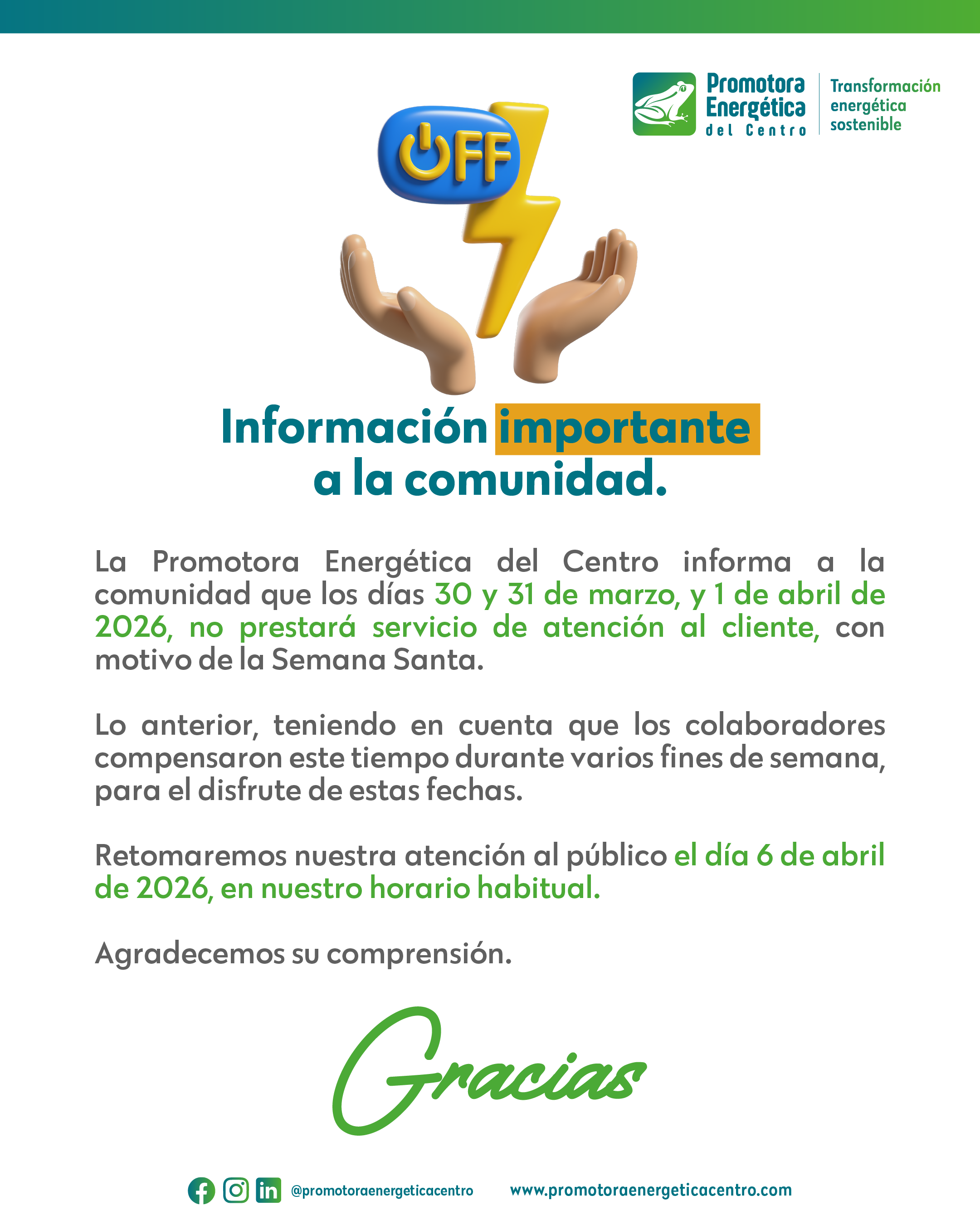 LA PROMOTORA ENERGÉTICA DEL CENTRO, COMPROMETIDA CON LA MEMORIA Y LA VERDAD EN CALDAS. 26 febrero, 2026
